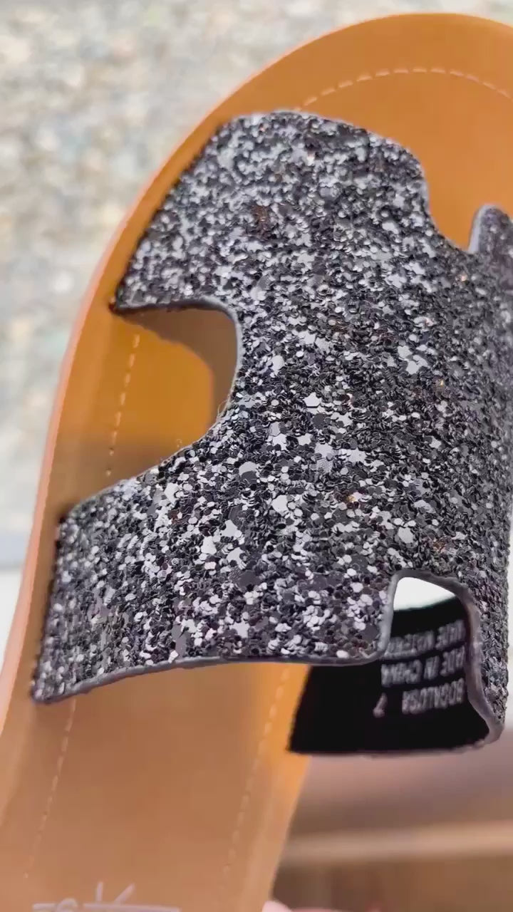 Elevate your summer style with Bogalusa, the perfect sandal for any occasion. Its sleek black chunky glitter details add a touch of sparkle to any outfit. Whether paired with a dress, jeans, or shorts, these ultra-comfy sandals will keep you looking and feeling your best all day long.