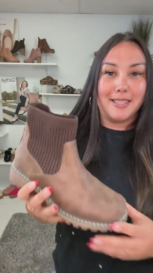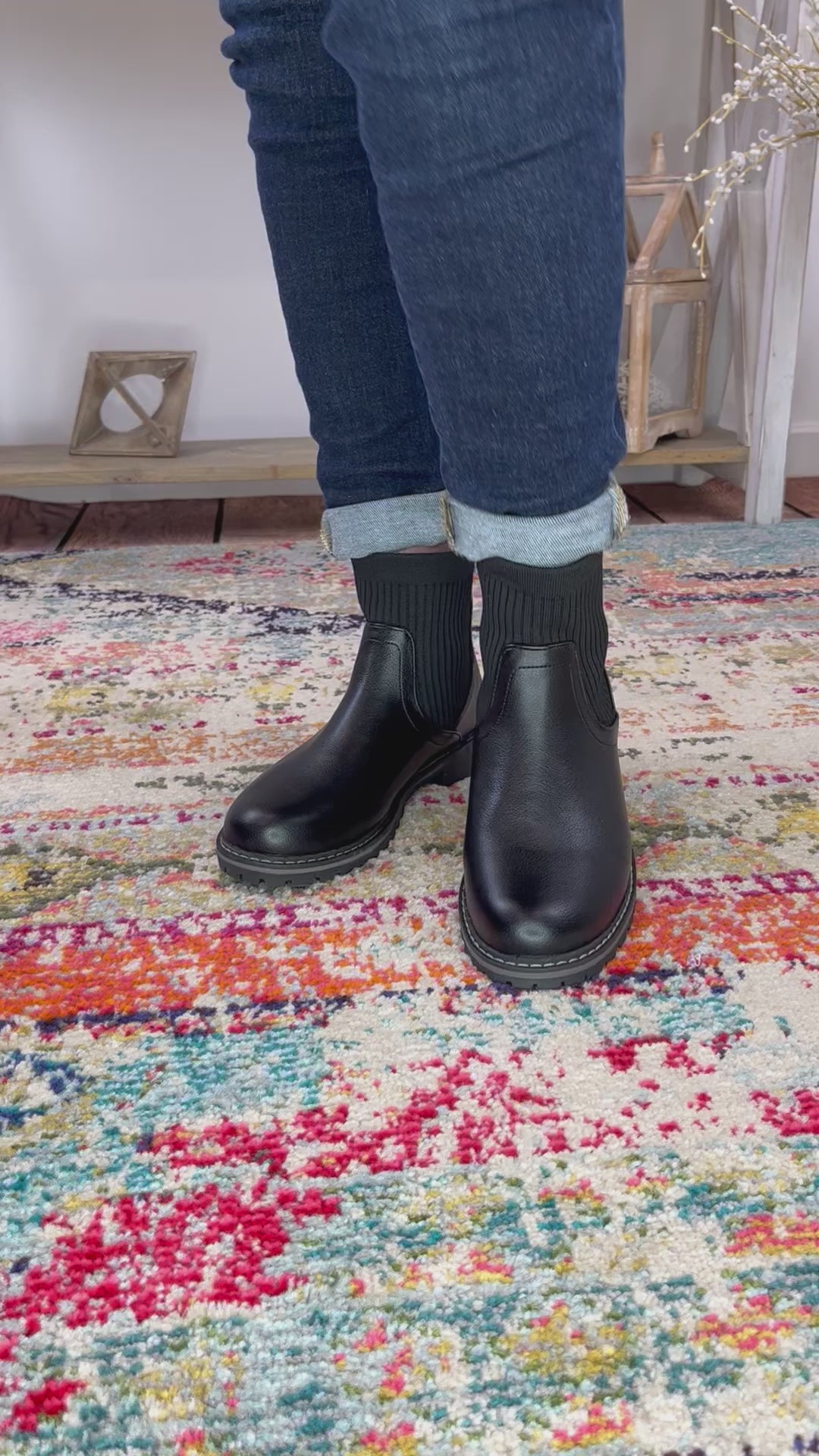 Cabin Fever Booties! Whether you're layering up for a crisp morning walk or styling them with a breezy dress for a casual day out, these booties offer all-day comfort and effortless versatility. The sock-like detail provides a snug, stretchy fit around any ankle, making them as practical as they are stylish. No matter the season, step out in comfort and style with these must-have booties!