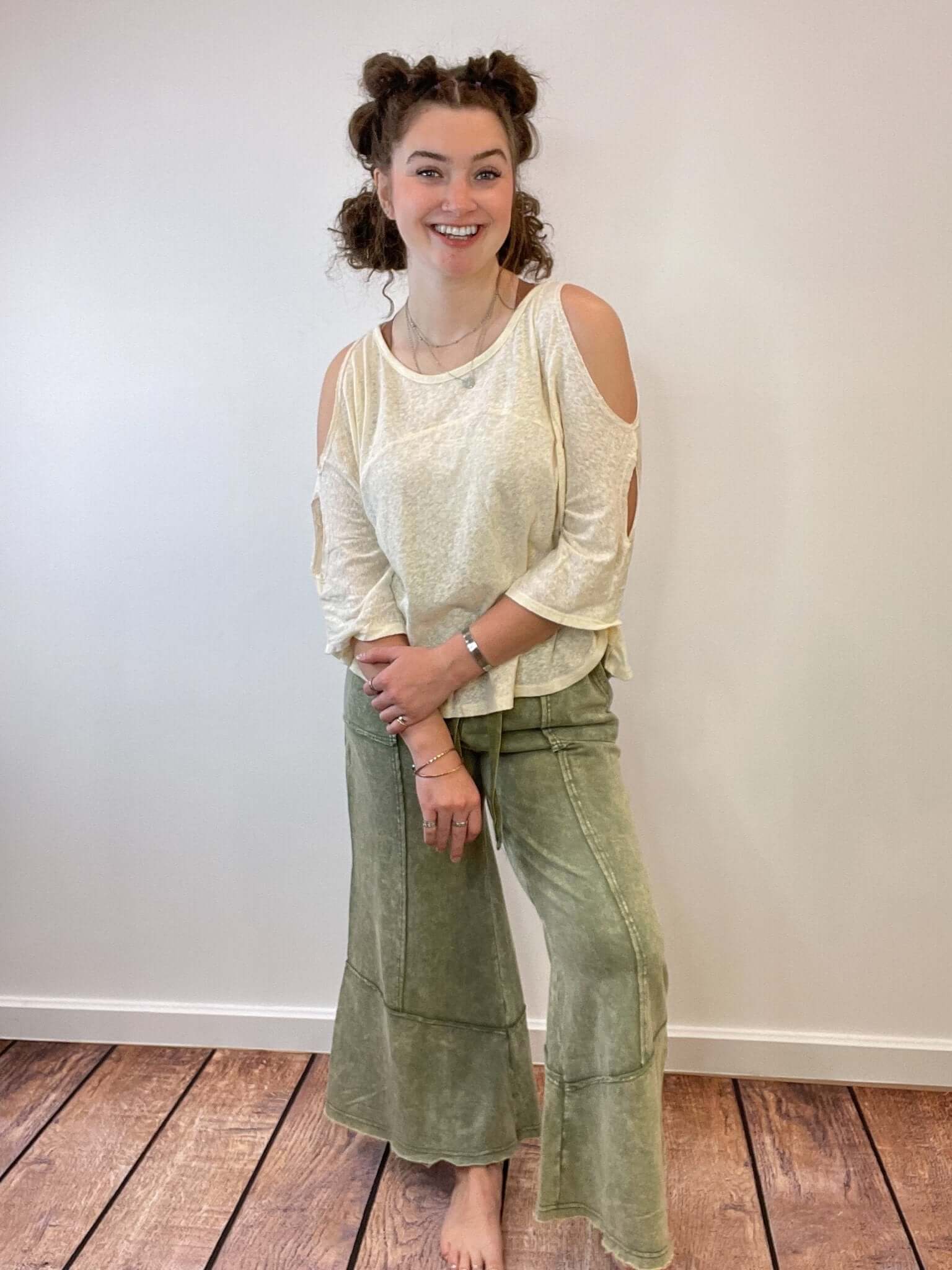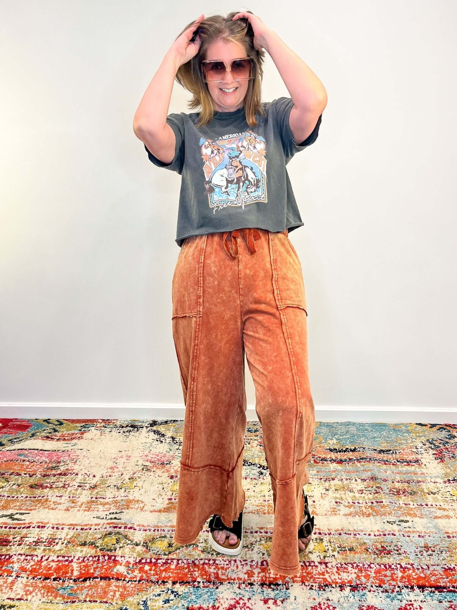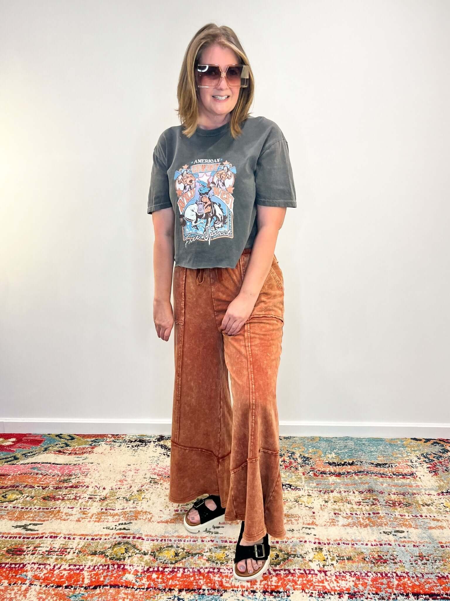 Easy Days Cropped Mineral Wash Wide Leg Flared Lounge Pants