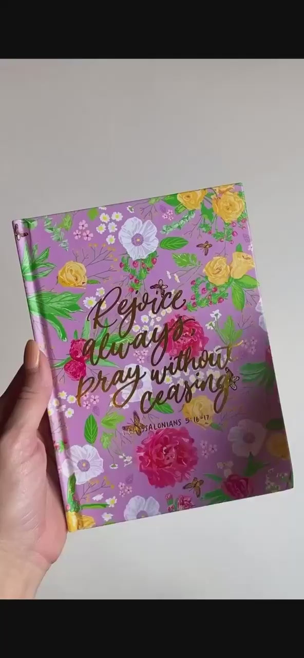 "Rejoice always, Pray without ceasing" is a great verse to remind us to pray without ceasing. This notebook is great for everyday journaling or to be used as a prayer notebook.