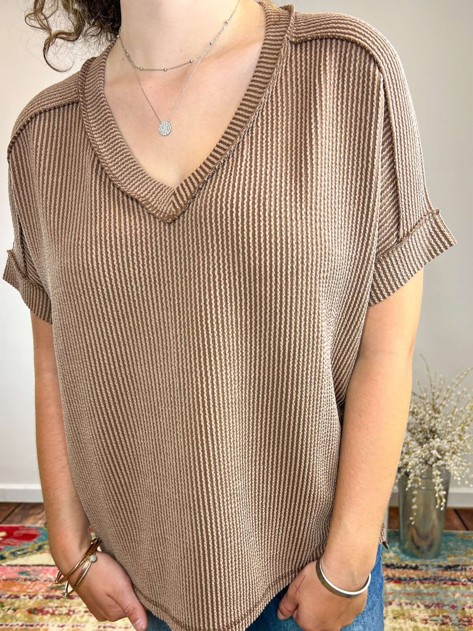 Lux Ribbed V-Neck Short Sleeve Top Shirt