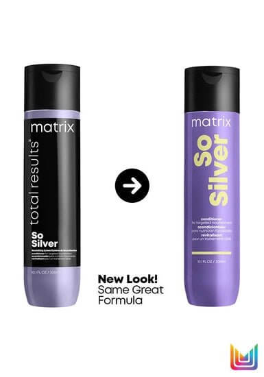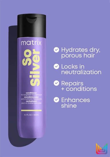 Matrix So Silver Conditioner hydrates dry and brittle hair through targeted nutrition technology that tames coarseness and leaves hair silky smooth.